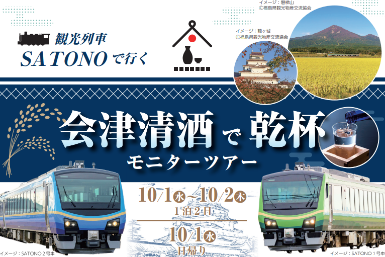 観光列車SATONOで行く!会津清酒で乾杯モニターツアーも販売中です。
