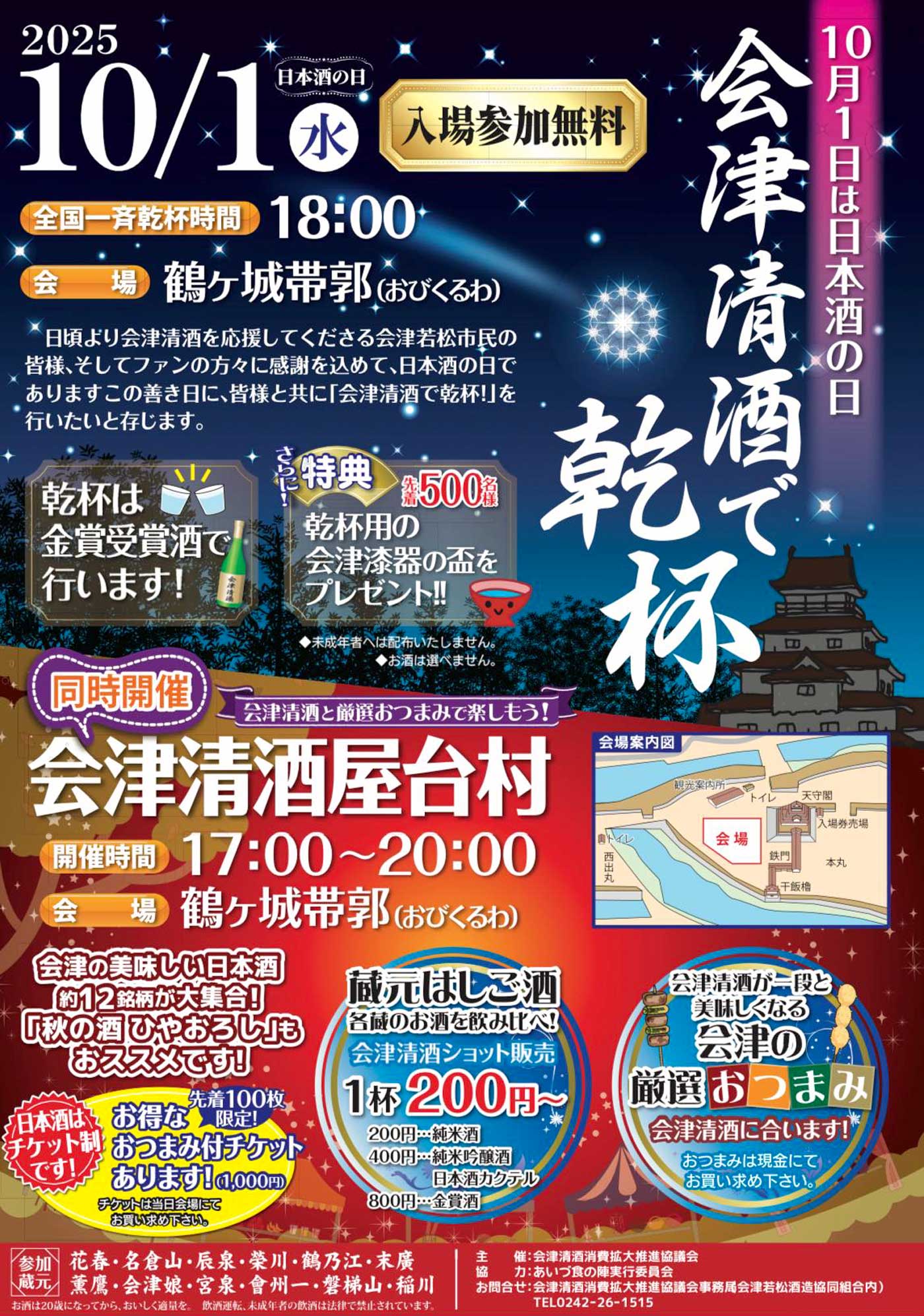 今年も10/1(水)の「日本酒の日」に「会津清酒で乾杯」イベントを開催します。